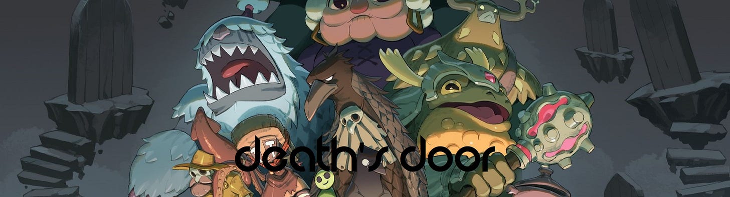 Pierwsza pozycja ukończona w 2022 roku okazała się bardzo dobrą i dopracowaną technicznie platformówką stworzoną przez dwóch Brytyjczyków. Na szczególną uwagę zasługuje ciekawa stylistyka oprawy AV i przeplatający całą grę czarny humor. Death's Door nie jest długa (platynę można zdobyć bez większych problemów w 17 godzin), ale oferuje mnóstwo zawartości - skróty, znajdźki, zagadki, ukryte bossy i dodatkowe zakończenie to tylko niektóre z nich. Poziom trudności jest świetnie wyważony - niektóre momenty mogą stanowić wyzwanie, ale nigdy nie poczułem się, jakby uderzał głową w mur. Fabuła nie jest jakoś wyjątkowo ambitna, ale spełnia swoją rolę i przyciąga do ekranu. Podsumowując, Death's Door to bardzo solidny indyk warty ogrania. Fajnie było zacząć nowy rok od takiej perełki.