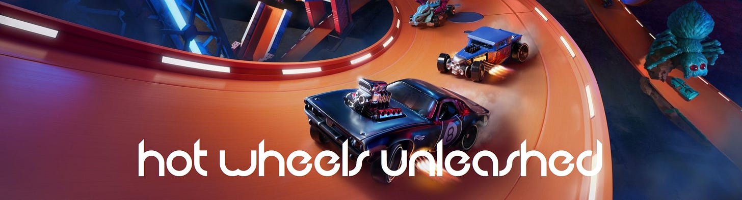 W ramach "odreagowania" po wspanialej, symulacyjnej przygodzie z Gran Turismo 7 postanowiłem spróbować czegoś bardziej arcade'owego, a tak się fajnie złożyło, że kilka miesięcy temu do Plusa trafiła Hot Wheels Unleashed. Ściągnąłem, zagrałem i tytuł ten przypadł mi do gustu na tyle, że postanowiłem podjąć się platynki. Cieszę się, że trochę zwlekałem z tą grą, bo podobno, zaraz po premierze, wiele osób narzekało na wyjątkowo nieprzyjemny i przesadzony grind, który kiepsko komponuje się z losowością loot boxów. Z przyjemnością donoszę jednak, że twórcy gry najwyraźniej zakończyli już jej rozwój i wprowadzili patch endgame'owy, który znacząco podniósł wysokość nagród za wszystkie wyścigi, przez co droga ku platynie stała się znacznie przyjemniejsza. W tej chwili do zdobycia ostatniego pucharka zostało mi tylko jedno trofeum, które wymaga odrobinę grindu, ale model jazdy resorakami i poziom zakręcenia tras są na tyle przyjemne, że z chęcią wracam do tej produkcji niemal co dzień, na krótkie sesje z doskoku, i powoli zmierzam w stronę finału. Jak wspomniałem wyżej, gra opiera się na loot boxach z resorakami, więc występuje tu pewna losowość, która zapewne napsuje trochę krwi niektórym graczom. Dla mnie jednak największą wadą tej produkcji jest coś innego: brak możliwości wyłączenia czy regulowania w opcjach gry trybu HDR. HWU jest bardzo dynamicznie oświetloną grą, na tyle dynamicznie, że niektóre lokacje potrafią wręcz oślepiać. Po kilku dłuższych sesjach stwierdziłem, że muszę wyłączać HDR z poziomu konsoli, szczególnie grając wieczorami, bo nie uśmiecha mi się psuć sobie wzroku. Mimo wszystko polecam ten tytuł, ale warto zwrócić uwagę na odpowiednie warunki do gry, bo szkoda oczu.