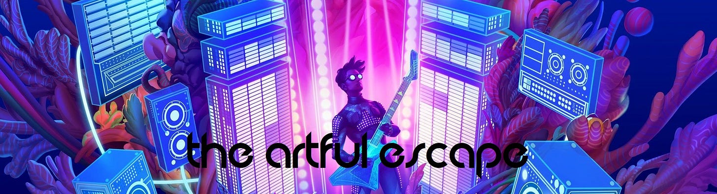 Trudno nazwać The Artful Escape pełnoprawną grą - choć ma zadatki na platformówkę, właściwie łatwiej byłoby zaliczyć ten tytuł do walking simulatorów. Nie uświadczysz tu, drogi czytelniku, nie wiadomo jak skomplikowanych mechanik czy zbierania rozsianych po świecie znajdziek, bo tytuł ten powstał w zupełnie innym celu. The Artful Escape to muzyczna, psychodeliczna podróż młodego chłopaka z małego miasteczka, poszukującego własnej tożsamości i pragnącego uwolnić się od oczekiwań najbliższego otoczenia. Szczerze polecam doświadczyć tej podróży każdemu miłośnikowi gitarowego grania, bo tytuł ten jest przecudowną i fenomenalnie brzmiącą laurką dla space rocka, okraszoną ciekawą fabułą, niesamowitą atmosferą, świetnie napisanymi postaciami i doskonałym, "suchym" humorem. Choć to zabrzmi banalnie, przez kilka krótkich godzin, które spędziłem z The Artful Escape, nie przestawałem się uśmiechać, a po głowie wciąż krążyła mi jedna myśl: "Jakie to wszystko jest bajeranckie!". Uwielbiam takie indie-perełki, które od czasu do czasu udaje mi się wyłowić z morza bylejakości. Szczerze polecam!