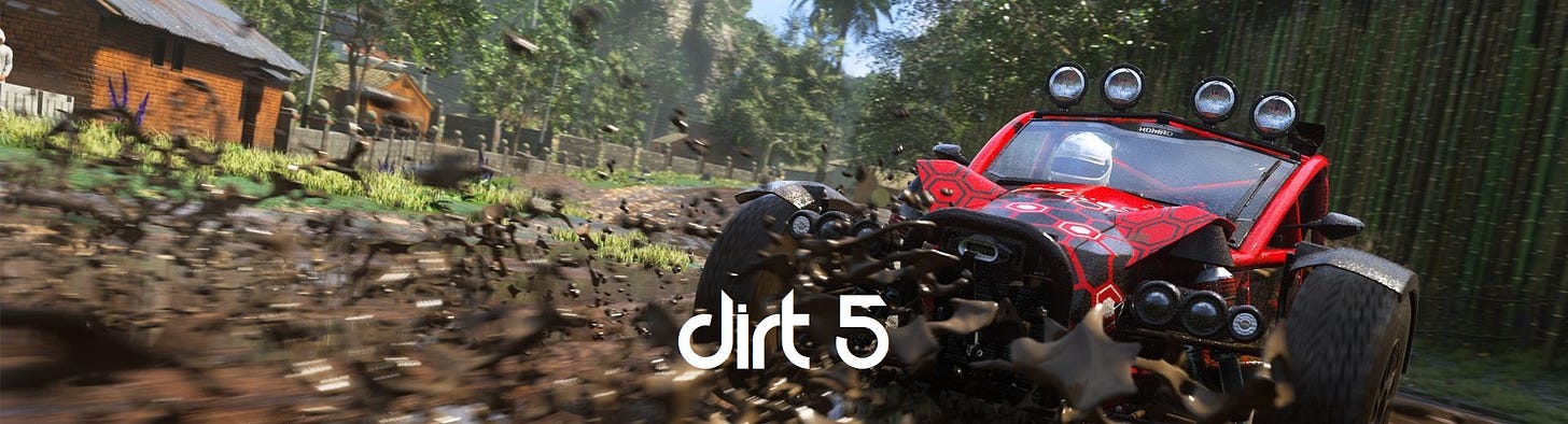 Nie planowałem grać w DiRT 5, ale gra wpadła do PlayStation Plus, a ja cieszę się, że jednak spróbowałem. Arcade'owy model jazdy jest bardzo przyjemny i łatwy do opanowania (może z wyjątkiem durnowatych wyścigów sprint). Grafika nie jest przełomowa, ale niektóre momenty potrafią zrobić niezłe wrażenie (zwłaszcza ulewy, zamiecie i burze piaskowe). Za to ścieżka dźwiękowa jest zadziwiająco przyjemna - pełna wpadających w ucho, rockowych kawałków i jednocześnie wolna od wpychanego ostatnio wszędzie "rapu". Kampania składa się z około 140 różnorodnych eventów, więc nie męczy długością i nie pozostawia niedosytu. Wszechobecne neonowe kolory nie odrzucają aż tak bardzo jak się tego obawiałem - za to irytujące jest nachalne promowanie przez EA możliwości zakupu kilku DLC po każdym załadowaniu gry (każdą z reklam na cały ekran trzeba zamknąć oddzielnie, kilkusekundowym przytrzymaniem przycisku). W skrócie: DiRT 5 to przyzwoite wyścigi, które stały się niespodziewanie fajną rozgrzewką przed dłuższą przygodą z Gran Turismo 7.