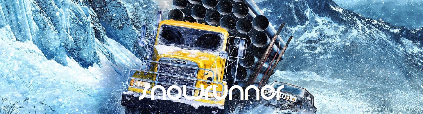 W moim zestawieniu nie mogło zabraknąć doskonałego SnowRunnera. W tym roku ukazała się bowiem usprawniona wersja na PS5, która zachęciła mnie do zdobycia drugiej platyny. SnowRunner okazał się jednym z moich największych odkryć roku 2020 i od tamtej pory, już przez ponad 2 lata, regularnie do niego wracam - choć w tym roku wyraźnie rzadziej niż w latach poprzednich. Tytuł ten zaintrygował mnie od pierwszego zwiastuna, mimo że wcześniej nie grałem w nic z tego gatunku. Kupiłem na premierę i przez wiele tygodni nie potrafiłem się oderwać. "Dark Souls na czterech kółkach" to idealna pozycja dla kogoś poszukującego relaksującej rozgrywki, kto jednocześnie oczekuje czegoś więcej niż tylko bezmózgiego wciskania przycisków. SnowRunner to świetne połączenie symulatora i strategii, w którym przywracamy do funkcjonowania kolejne, odcięte od świata regiony Stanów, Kanady i Rosji. Zaczyna się od prostych zleceń typu naprawy dróg, mostów czy słupów telegraficznych, a za zarobione pieniądze rozwija się flotę pojazdów pozwalającą na mierzenie się z coraz trudniejszymi kontraktami w coraz bardziej nieprzystępnym terenie, takimi jak n.p. reaktywacja infrastruktury starego, radzieckiego kosmodromu. W ramach drugiego roku DLC developerzy wprowadzili do gry również nieco inne, ciekawe mechaniki, takie jak wyścigi terenowe czy tak uwielbiane przeze mnie e-rolnictwo ;) Polecałem w zeszłym roku, a więc polecam i w tym - szczególnie w nowej oprawie currentgenowej! Wygląda na to, że developerzy nie powiedzieli jeszcze ostatniego słowa i szykują kolejne - mam nadzieje ekscytujące - wyzwania, a więc, prawdopodobnie, do usłyszenia za rok, w tym samym miejscu i o tej samej porze ;)